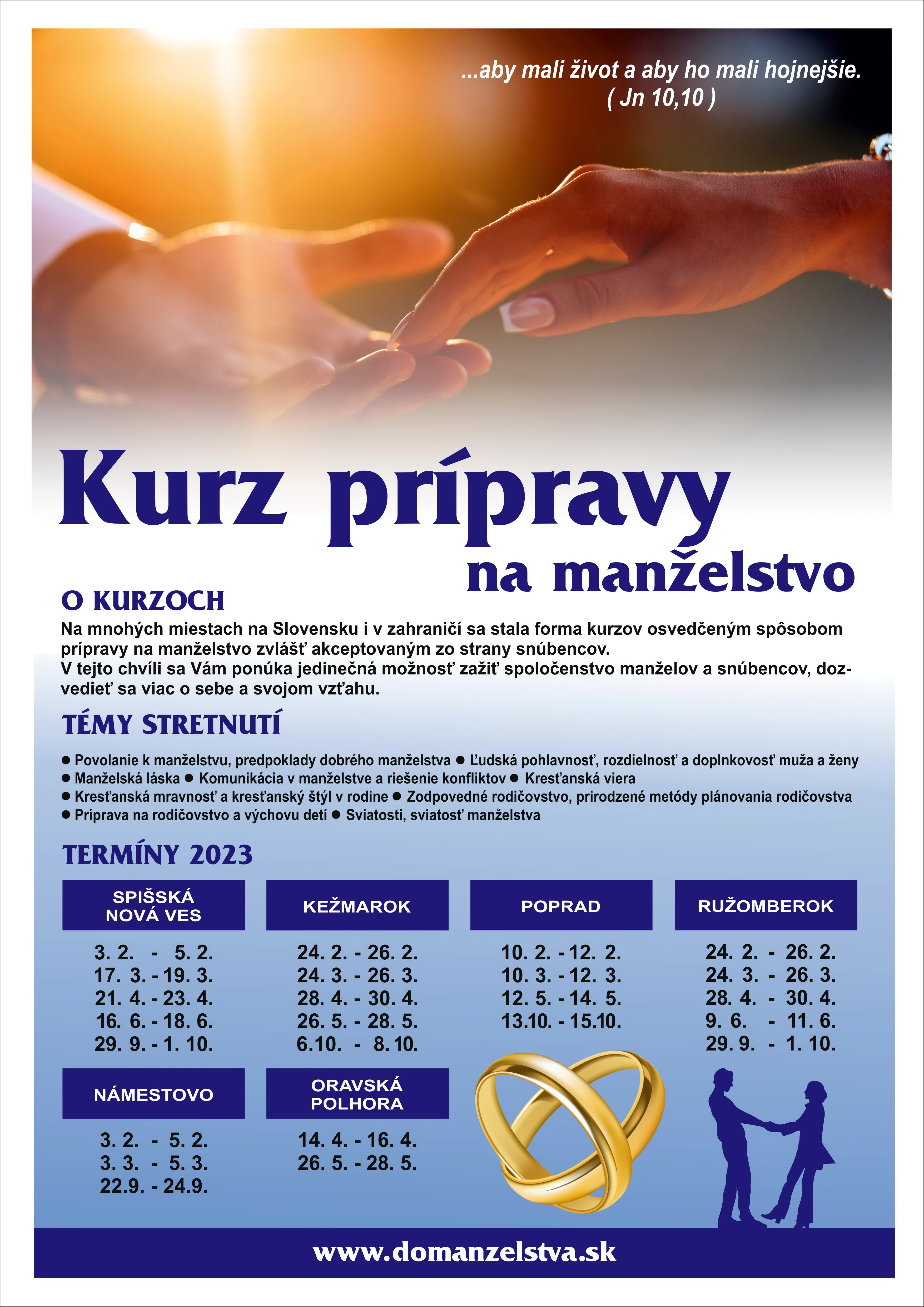 Termíny kurzov prípravy na manželstvo na rok 2023