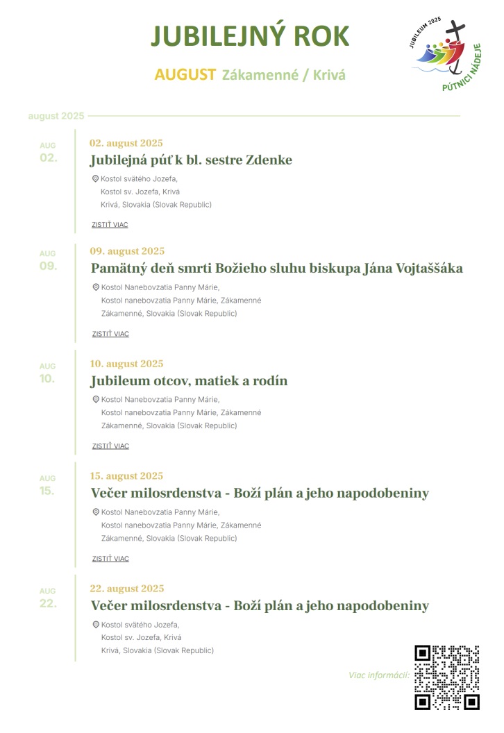 Jubilejný rok - program na August